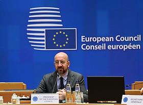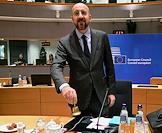 Саммит Европейского союза (ЕС) в Брюсселе. Председатель Европейского совета Шарль Мишель во время саммита.
