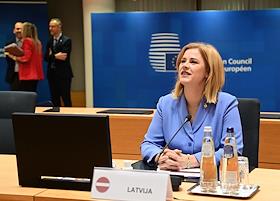 Саммит Европейского союза (ЕС) в Брюсселе. Премьер-министр Латвии Эвика Силиня во время саммита.