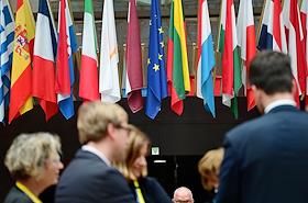 Саммит Европейского союза (ЕС) в Брюсселе. Жанровая фотография. Флаги государств ЕС.
