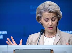 Саммит Европейского союза (ЕС) в Брюсселе. Глава Еврокомиссии Урсула фон дер Ляйен на саммите.