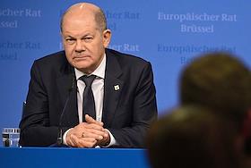 Саммит Европейского союза (ЕС) в Брюсселе. Канцлер Германии Олаф Шольц на саммите.