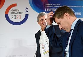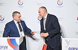XXI Общероссийский форум "Стратегическое планирование в регионах и городах России" в отеле "Коринтия Санкт-Петербург". Первый заместитель генерального директора "Группы ЛСР" Игорь Левит (слева) и председатель комитета по экономической политике и стратегическому планированию Санкт-Петербурга Алексей Зырянов (справа) во время форума.