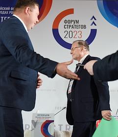 XXI Общероссийский форум "Стратегическое планирование в регионах и городах России" в отеле "Коринтия Санкт-Петербург". Директор ФАНУ "Востокгосплан" Михаил Кузнецов (в центре) во время форума.