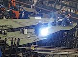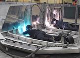 Средне-Невский судостроительный завод (СНСЗ). Жанровая фотография. Рабочий во время сборки и строительства катамаранов проектов "Котлин" и "Соммерс".