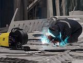 Средне-Невский судостроительный завод (СНСЗ). Жанровая фотография. Сварщик во время работы в цехе СНСЗ.