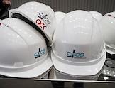 Средне-Невский судостроительный завод (СНСЗ). Жанровая фотография. Белые защитные каски с логотипом СНСЗ.