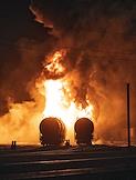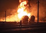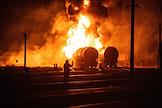 Ситуация в Донецкой Народной Республике (ДНР). Последствия обстрела станции Мушкетово в Донецке. Горящий железнодорожный состав.