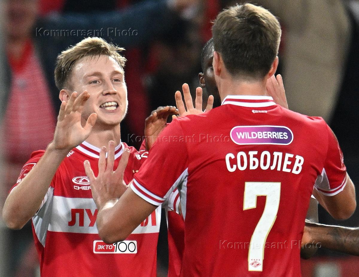 Фонбет - Кубок России по футболу 2023/24. Матч между командами "Спартак" (Москва) — "Краснодар" (Краснодар) на стадионе "Открытие Банк Арена". Игроки команды "Спартак" во время матча.