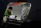 Старт полетной программы авиакомпании Flydubai из Волгограда в Дубай. Жанровая фотография. Сотрудники технической службы во время обработки самолета антиобледенительными реагентом перед первым прямым регулярным рейсом из Волгограда в Дубай в здании Международного аэропорта Волгоград.