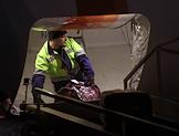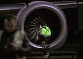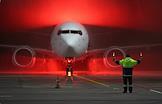 Старт полетной программы авиакомпании Flydubai из Волгограда в Дубай. Жанровая фотография. Сотрудники технической службы во время проверки турбины самолета перед первым прямым регулярным рейсом из Волгограда в Дубай в здании Международного аэропорта Волгоград.