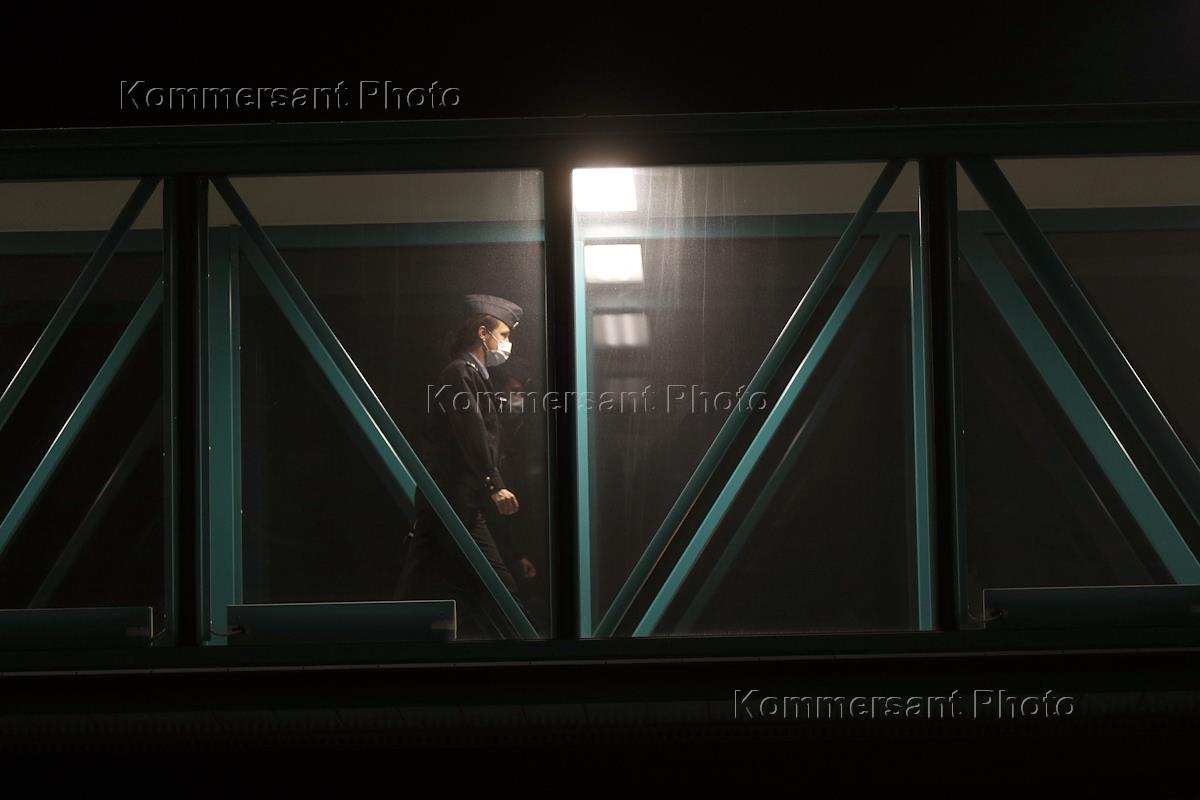 Старт полетной программы авиакомпании Flydubai из Волгограда в Дубай. Жанровая фотография. Сотрудница таможенной службы идет по специальному коридору перед посадкой пассажиров на первый прямой регулярный рейс из Волгограда в Дубай в здании Международного аэропорта Волгоград.