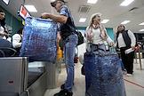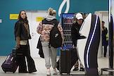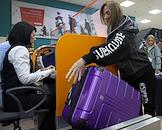 Старт полетной программы авиакомпании Flydubai из Волгограда в Дубай. Пассажиры во время упаковки багажа на первый прямой регулярный рейс из Волгограда в Дубай в здании Международного аэропорта Волгоград.