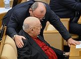 Пленарное заседание Государственной думы (ГД) России. Члены комитета ГД России по обороне Виктор Заварзин (слева) и Виктор Соболев (справа) во время заседания.