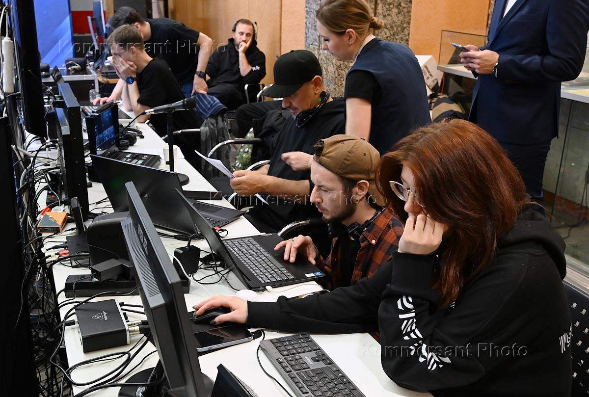 Церемония начала торгов акциями ПАО "Хэндерсон Фэшн Групп" на Московской биржи. Жанровая фотография. Подготовка к церемонии.