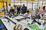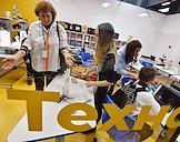 Международная выставка-форум "Россия" на ВДНХ. Образовательная экспозиция "Мое просвещение", организованная Министерством просвещения России и АО "Просвещение" в 57 павильоне. Жанровая фотография. Посетители выставки и методисты АО "Просвещение" в комнате для мастер-классов.