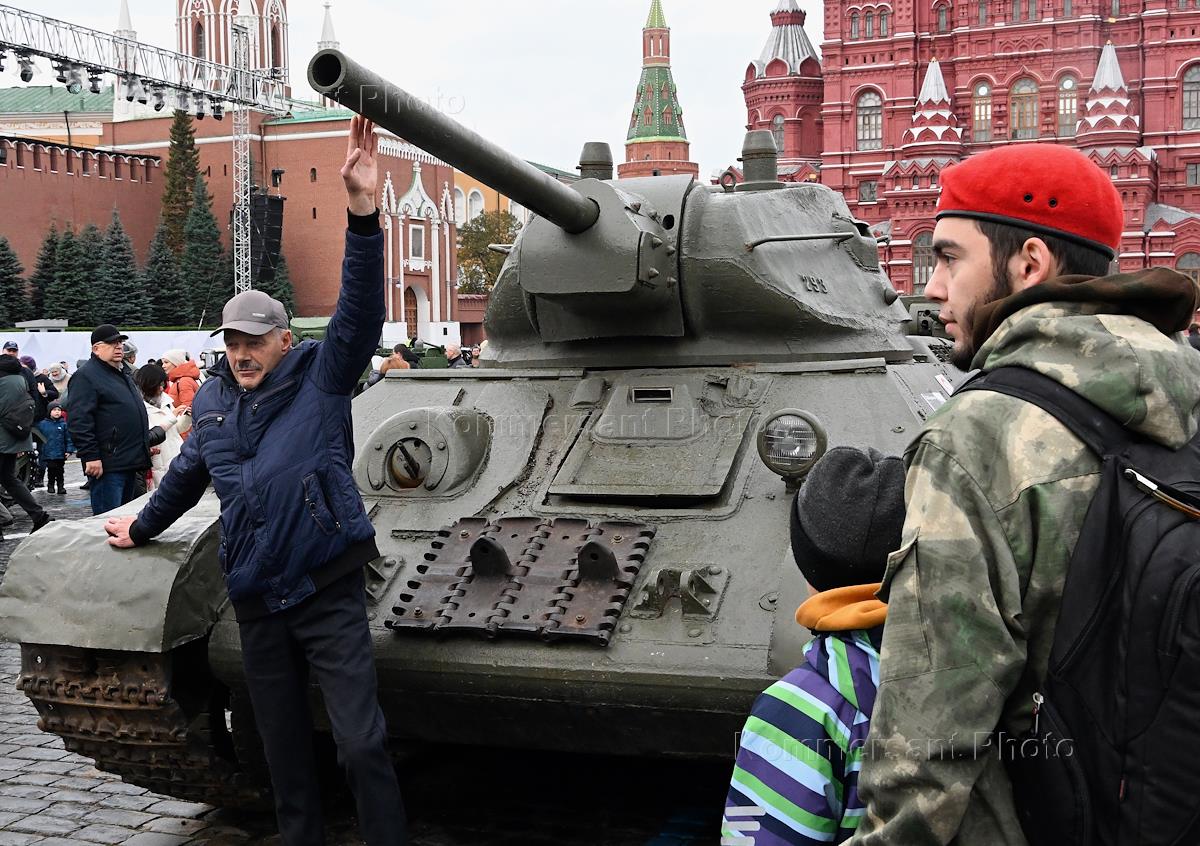 Интерактивный музей под открытым небом, в честь 82-й годовщины военного парада, с которого во время Великой Отечественной войны началось контрнаступление под Москвой, на Красной площади. Средний танк Т-34-76.