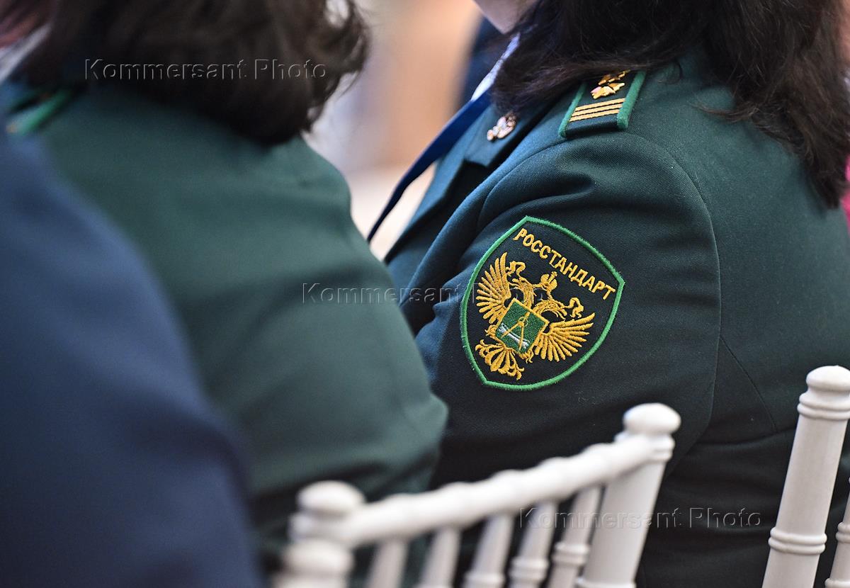International forum "World Quality Day in Russia". Plenary session "The New Face of Quality". Genre photography. Patch on the sleeve of the uniform of an employee of the Federal Agency for Technical Regulation and Metrology (Rosstandart).