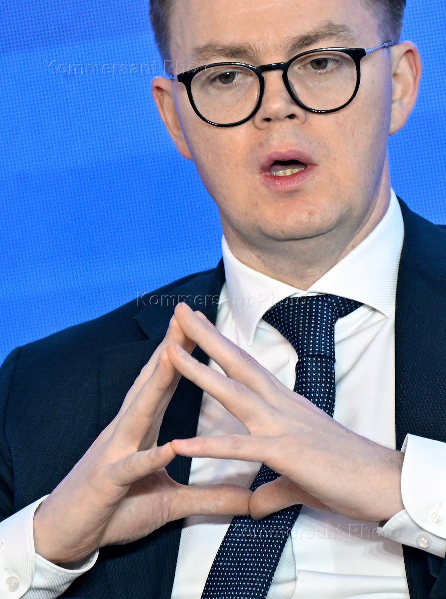International forum "World Quality Day in Russia". Plenary session "The New Face of Quality". Head of the Federal Agency for Technical Regulation and Metrology (Rosstandart) Anton Shalaev during the meeting.