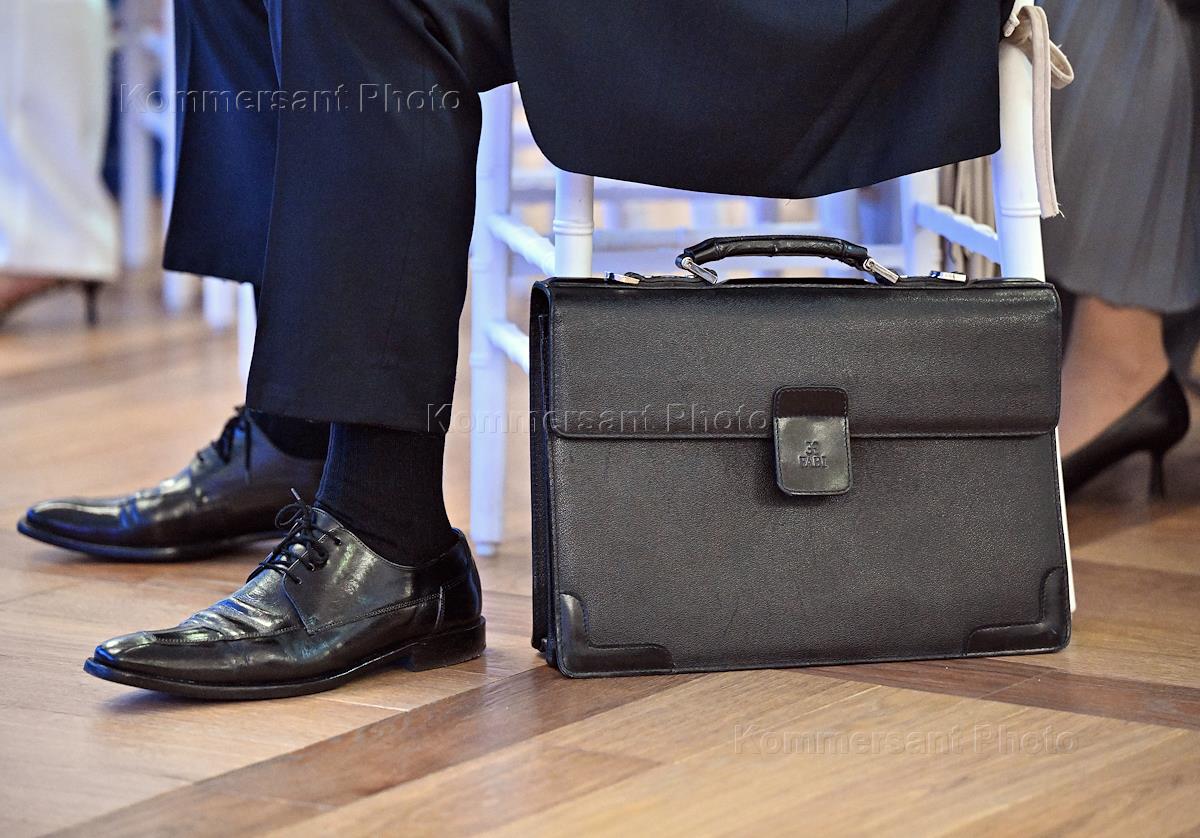Международный форум "Всемирный день качества в России". Пленарное заседание. Жанровая фотография. Пакет с логотипом форума у участника.