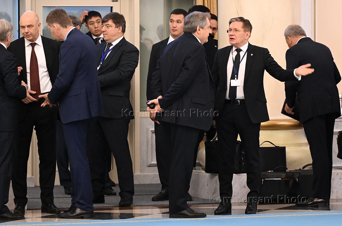 Рабочая поездка президента России Владимира Путина в Казахстан. Члены правительственной делегации Казахстана во время встречи президента России Владимира Путина и президента Республики Казахстан Касыма-Жомарта Токаева в резиденции "Акорда".