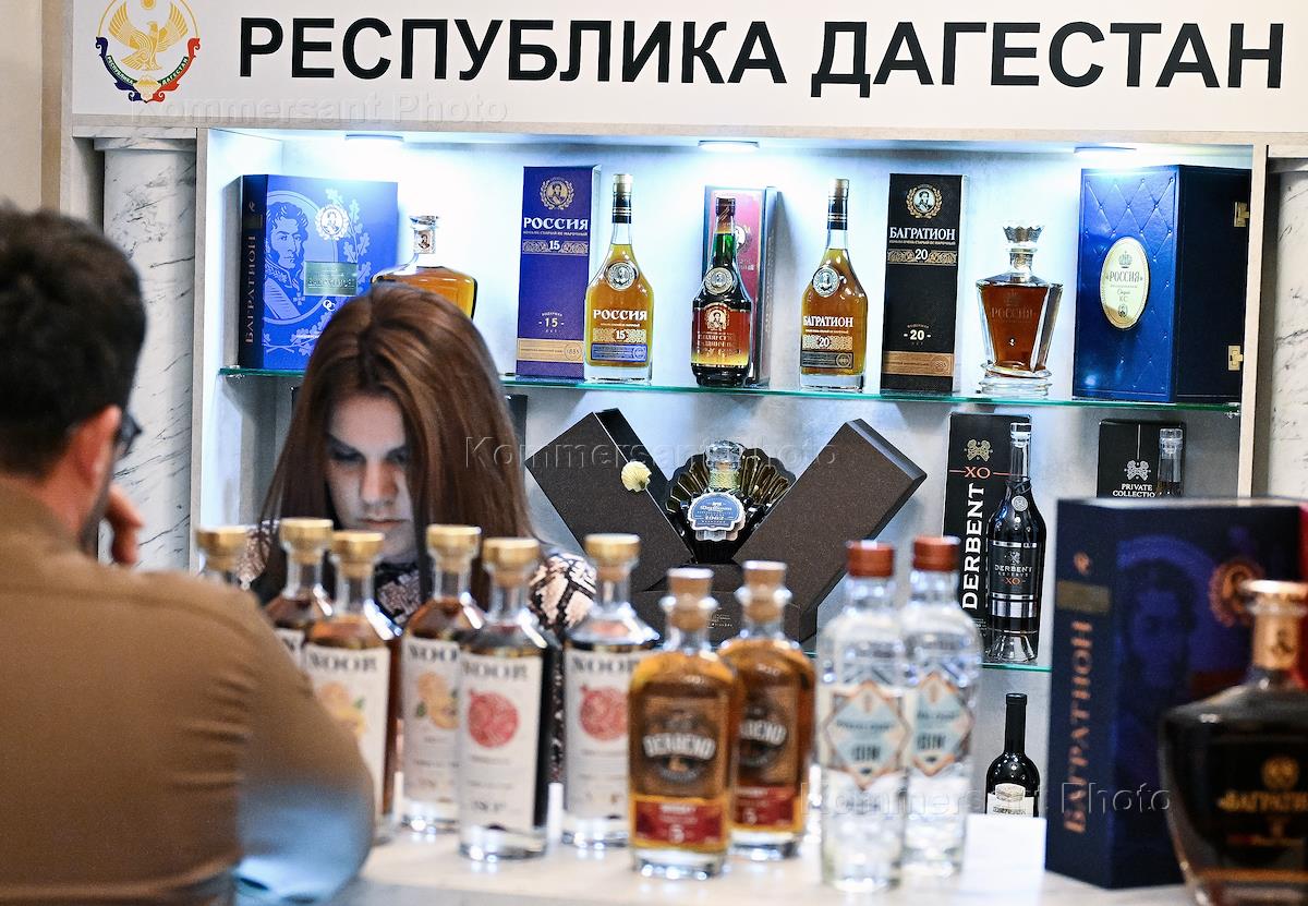 Второй Российский винодельческий форум в Radisson Collection Hotel. Выставка-салон российских производителей вина. Жанровая фотография. Стенд Республики Дагестан.