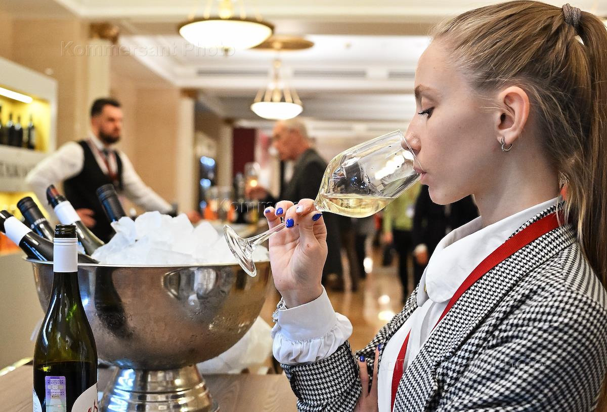 Второй Российский винодельческий форум в Radisson Collection Hotel. Церемония открытия форума с дегустацией российских игристых вин. Жанровая фотография.