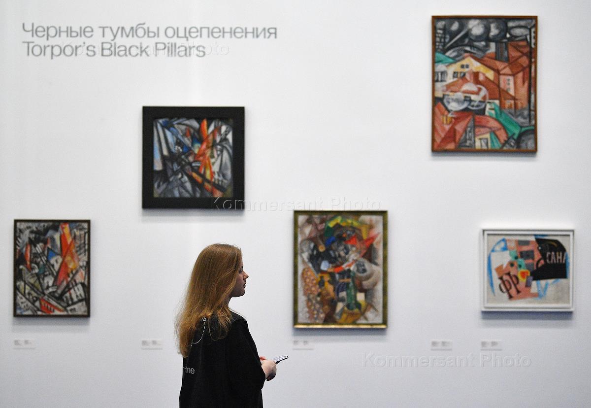 Выставка "Кубок созвучий. По направлению к Розановой", посвященная искусству художницы Ольги Розановой (1886–1918) и его связи с советским неофициальным искусством и искусством современным художниц, в Доме культуры "ГЭС-2". Посетители на выставке.