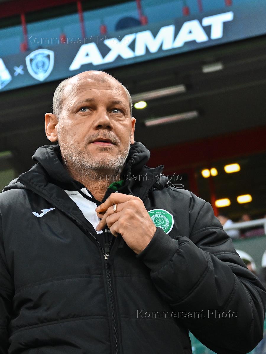 Российская Премьер-Лига (РПЛ). МИР - Чемпионат России по футболу 2023/2024. 15-й тур. Матч между командами "Локомотив"(Москва) - "Ахмат" (Грозный) на стадионе "РЖД Арена". Главный тренер команды "Ахмат" Мирослав Ромащенко во время матча.