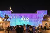Виды Турина перед началом Ежегодного итогового турнира среди мужчин ATP Finals 2023. Жанровая фотография. Световая проекция логотипа ATP Finals 2023 на фасаде Королевского дворца.