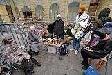 Старт продаж билетов на балет "Щелкунчик" Петра Чайковского в кассах Государственного академического Большого театра (ГАБТ) на Театральной площади. Жанровая фотография. Люди возле касс ГАБТа.