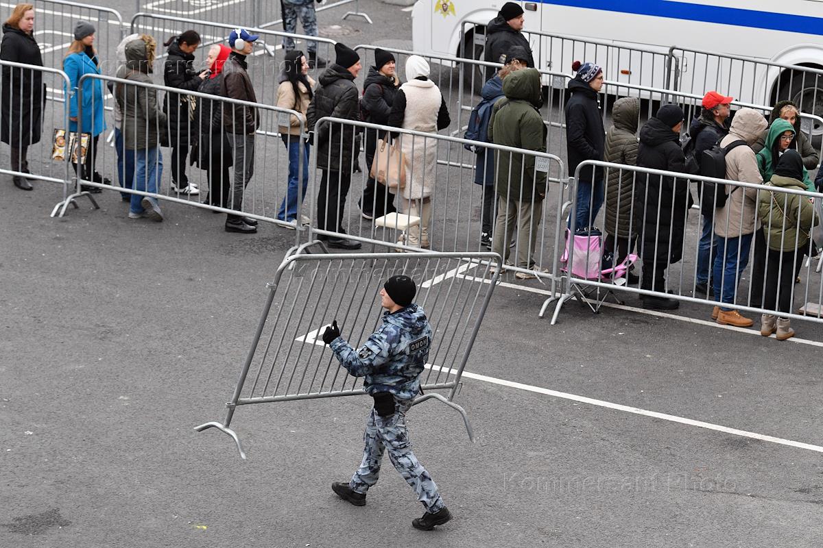 Старт продаж билетов на балет "Щелкунчик" Петра Чайковского в кассах Государственного академического Большого театра (ГАБТ) на Театральной площади. Жанровая фотография. Люди в очереди в кассы ГАБТа.