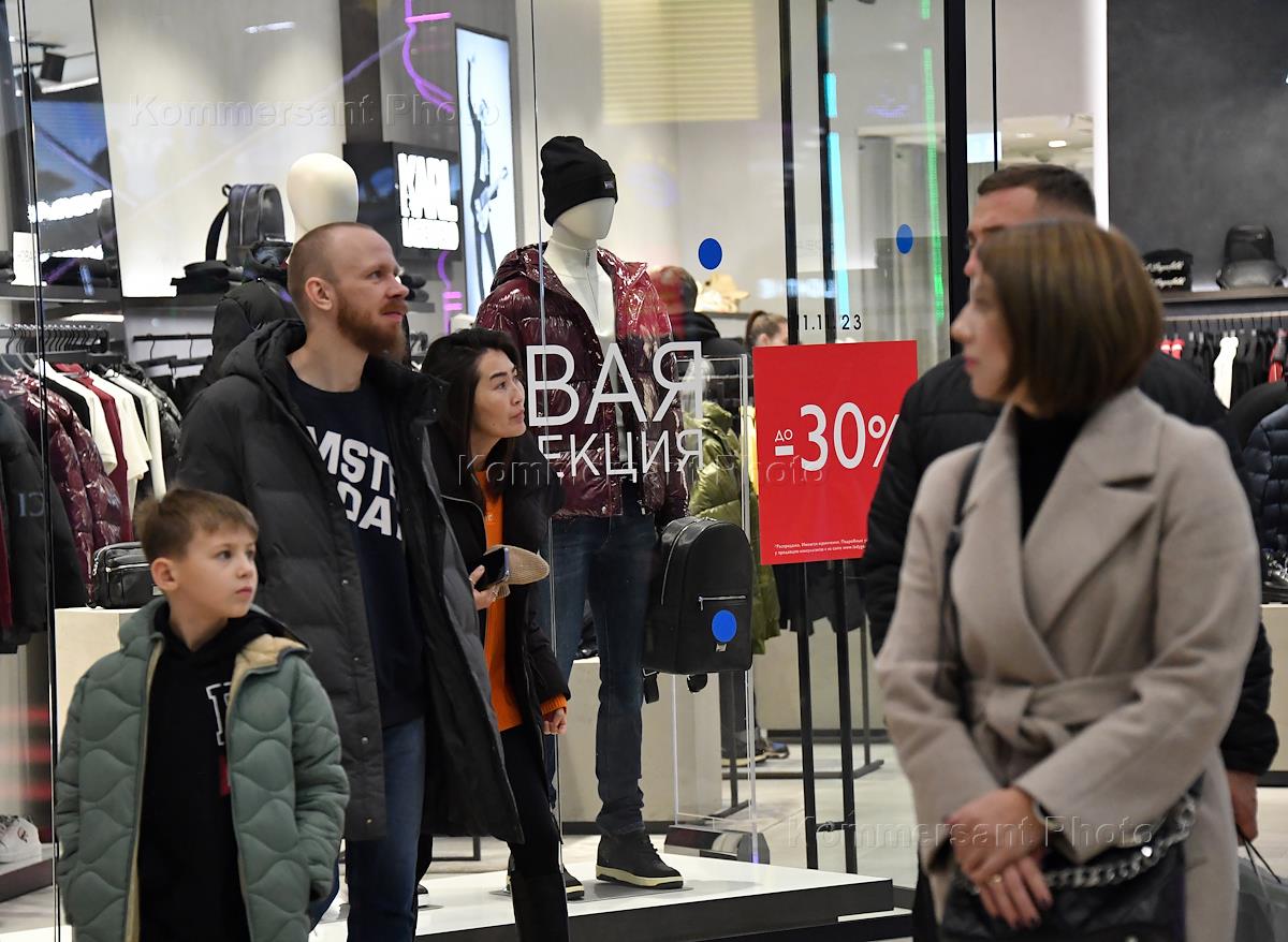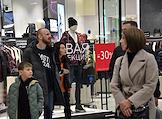 Работа торгового центра (ТЦ) "Европейский" во время распродаж "Черная пятница". Жанровая фотография. Покупатели в торговом центре.