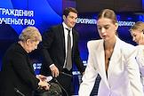 Торжественная церемония награждения лауреатов медали Российской академии образования "Молодым ученым за успехи в науке" в МИА "Россия сегодня". Президент Российской академии образования Ольга Васильева (слева) и заместитель министра науки и высшего образования России Денис Секиринский (в центре) на церемонии.