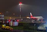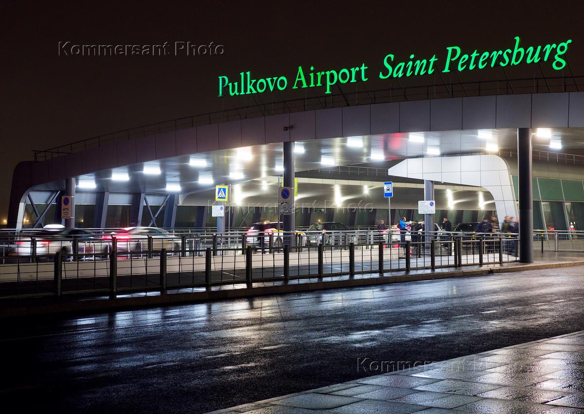 Виды Международного аэропорта Пулково во время утреннего тумана. Жанровая фотография. Самолет авиакомпании "Россия" в аэропорту.