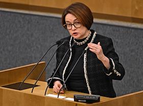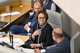 Пленарное заседание Государственной думы (ГД) России. Председатель Центрального Банка России Эльвира Набиуллина во время заседания.