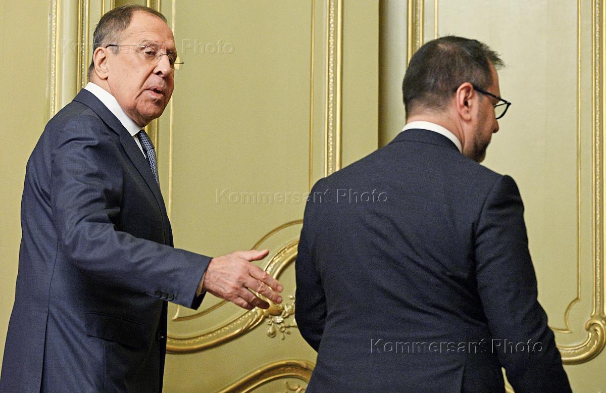 Переговоры министра иностранных дел России Сергея Лаврова с министром иностранных дел Венесуэлы Иваном Хиль Пинто в Доме приемов МИД России. Министр иностранных дел Венесуэлы Иван Хиль Пинто (слева) и министр иностранных дел России Сергей Лавров (справа) перед началом переговоров.