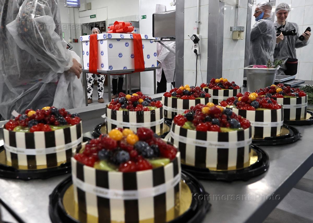 Кондитерское производство "Север-Метрополь" в Санкт-Петербурге. Жанровая фотография. Торт от шеф-кондитера "Фруктовая горка".