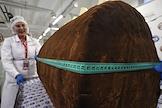 Кондитерское производство "Север-Метрополь" в Санкт-Петербурге. Церемония фиксации рекорда в Реестр Рекордов России в номинации "Самое большое пирожное-"Картошка" в России".