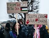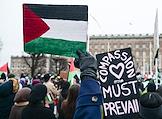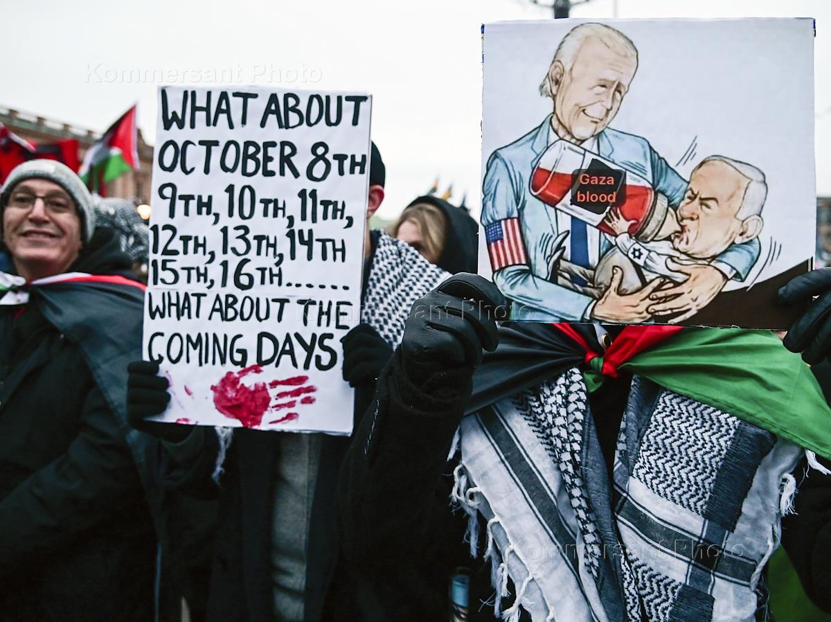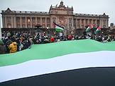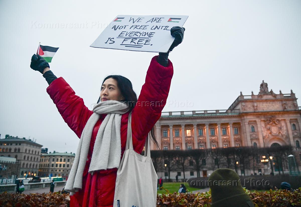 Митинг в поддержку Палестины прошел на площади перед зданием парламента Швеции. Участники во время митинга.