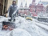 Виды Москвы. Жанровая фотография. Сотрудник коммунальных служб во время уборки снега на улице.