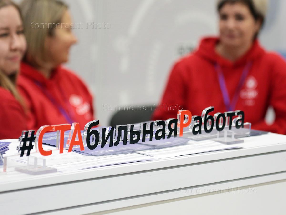 Пермская выставка-форум "Образование и карьера" в конгрессно-выставочном центре (КВЦ) "Пермь Экспо". Жанровая фотография. Стенд кадрового центра "Работа России"