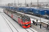 Жанровая фотография. Электричка и грузовые поезда на железнодорожной станции Базайха.
