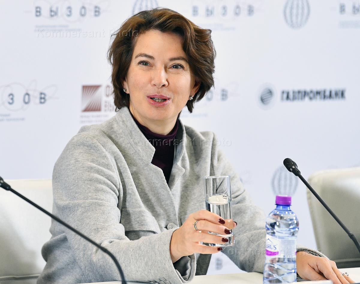 Пресс-конференция, посвященная первой церемонии вручения Национальной премии в области будущих технологий "ВЫЗОВ" в ЦВЗ "Манеж". Директор по цифровизации государственной корпорации по атомной энергии "Росатом" Екатерина Солнцева во время пресс-конференции.