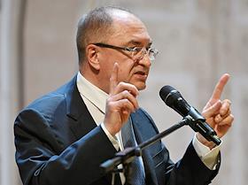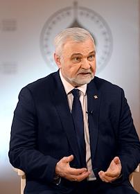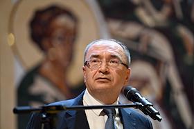 Юбилейный XXV Всемирный русский народный собор (ВРНС), посвященный теме "Настоящее и будущее Русского мира", в Зале Церковных Соборов Храма Христа Спасителя. Ректор Санкт-Петербургского университета Николай Кропачев во время заседания перед началом работы тематических секций.