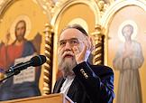 Юбилейный XXV Всемирный русский народный собор (ВРНС), посвященный теме "Настоящее и будущее Русского мира", в Зале Церковных Соборов Храма Христа Спасителя. Философ, лидер движения "Евразия" Александр Дугин во время заседания перед началом работы тематических секций.