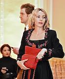 Большой показ российских дизайнеров в рамках Международного форума BRICS+ Fashion Summit в демонстрационном зале Главного универсального магазина (ГУМ). Марина Юдашкина (слева) перед началом показа.