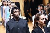 Большой показ российских дизайнеров в рамках Международного форума BRICS+ Fashion Summit в демонстрационном зале Главного универсального магазина (ГУМ). Певица Евгения Малахова (в центре) перед началом показа.