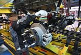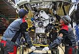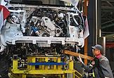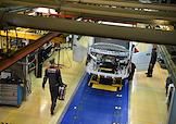 Работа производства ООО "СОЛЛЕРС Алабуга" в Елабужском муниципальном районе. Производство модельной линейки легких коммерческих автомобилей под брендом СОЛЛЕРС. Сотрудники производства во время сборки автомобиля Sollers Atlant на конвейере в цехе.