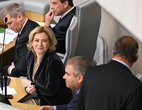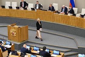 Пленарное заседание Государственной думы (ГД) России. Министр культуры России Ольга Любимова (в центре) во время заседания.