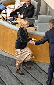 Пленарное заседание Государственной думы (ГД) России. Министр культуры России Ольга Любимова (справа) во время заседания.